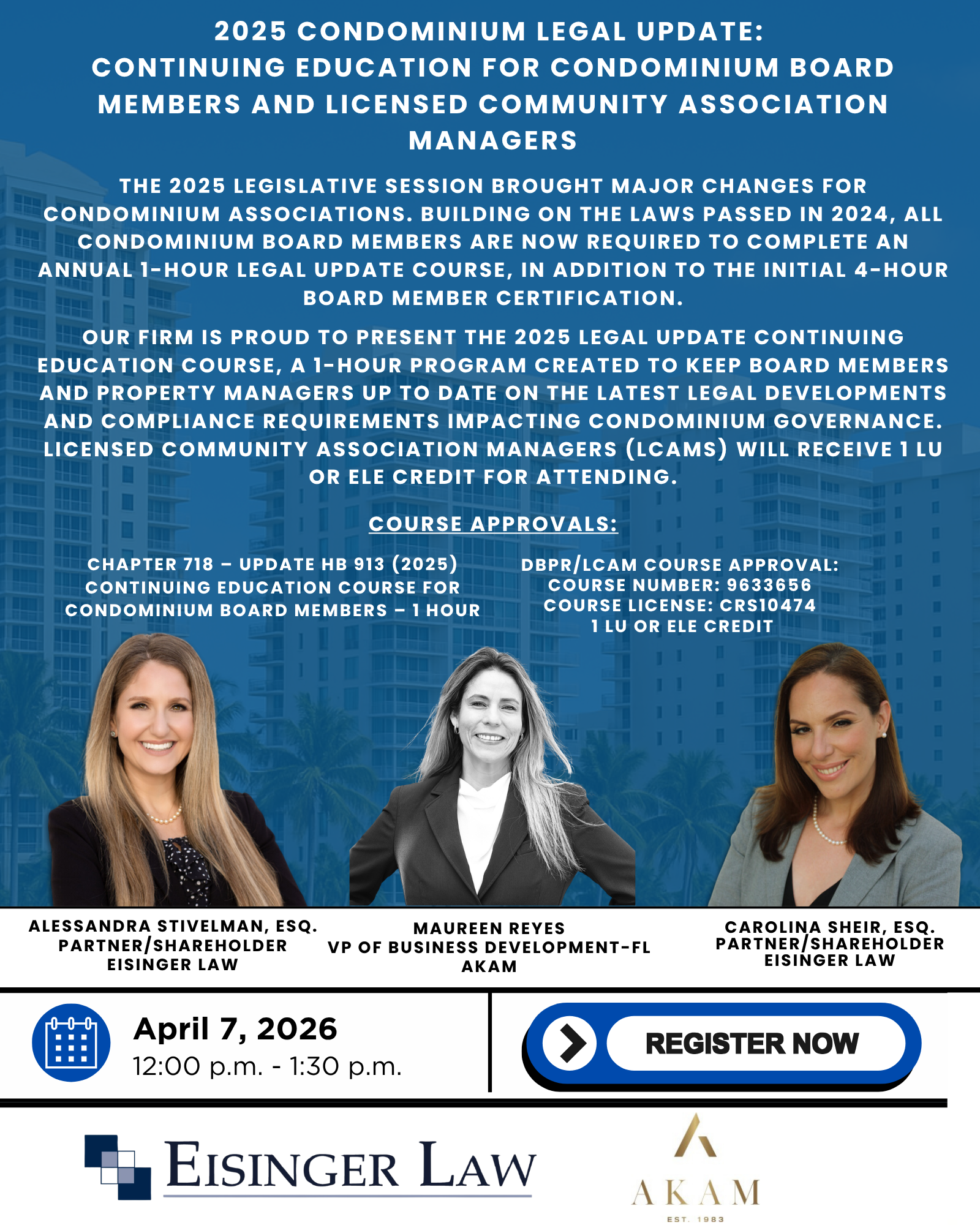 2025 Condominium Legal Update: Continuing Education for Condominium Board Members and Licensed Community Association Managers