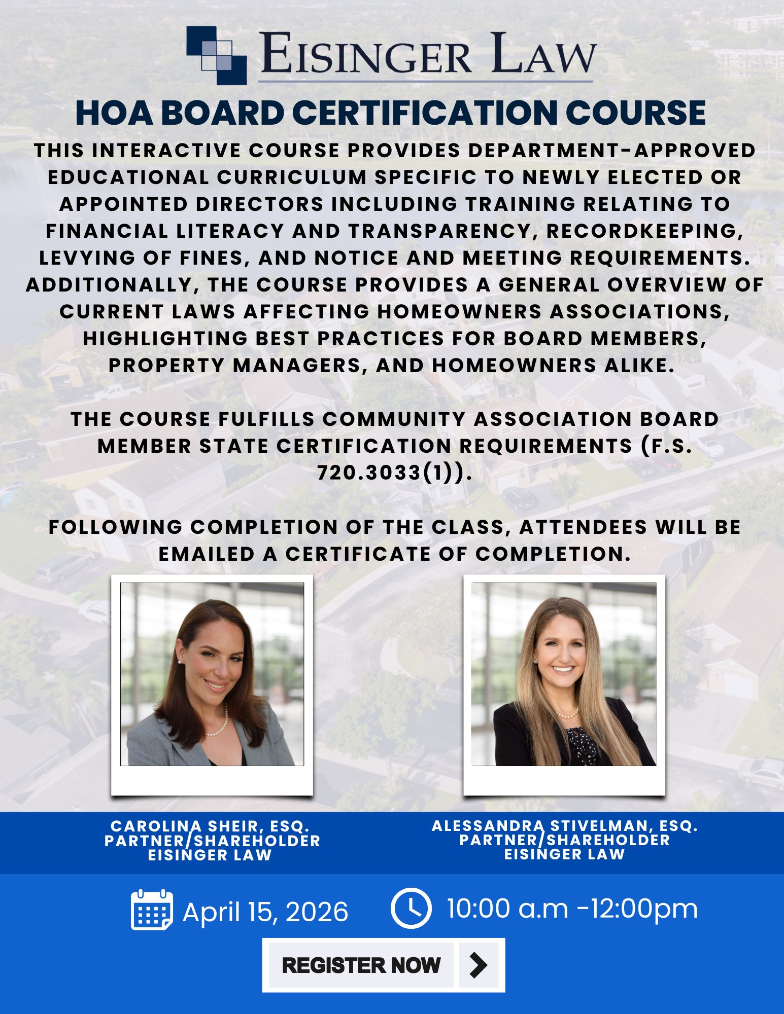 HOA Board Certification Course – April 15, 2026